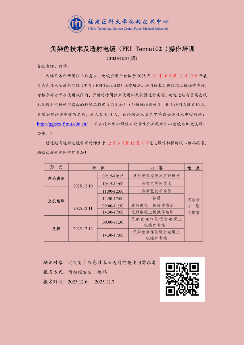 负染色技术及透射电镜(FEI TecnaiG2 )操作培训 (20251210 期)